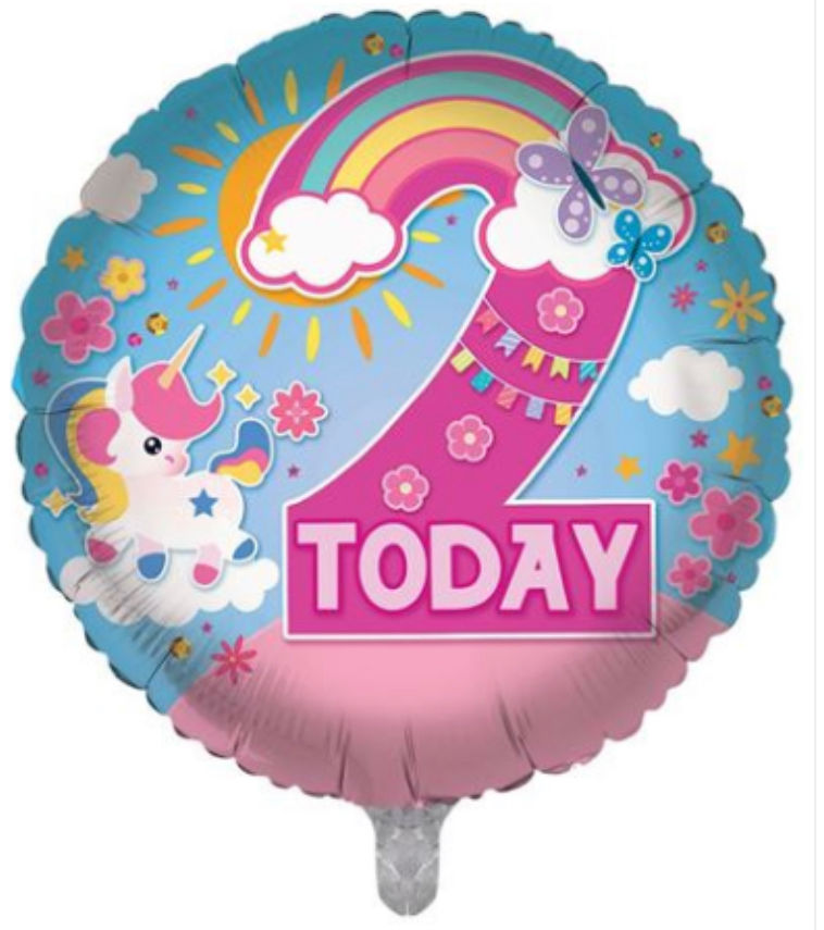 Age 2 Birthday Girl Foil Balloon 18" / 46cm, Unicorn themed